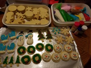 - Decorating sugar cookies at family gatherings throughout the year. I make several dozen cutout cookies and tubes of tinted buttercream frosting and the entire family from toddlers to grandparents enjoy showing off their creativity.