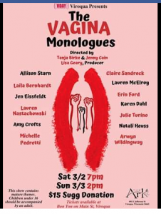 As part of the V-Day global movement to end violence against women and girls, CSP Viroqua Case Managers Jenny Cain and Tanja Birke are co-directing The Vagina Monologues. This is an award-winning play by Eve Ensler, based on interviews with more than 200 women. With humor and grace, this piece celebrates women’s sexuality and strength.
