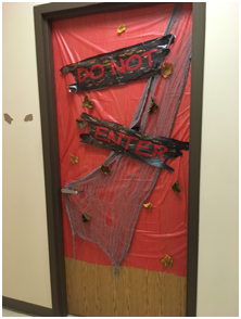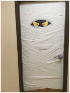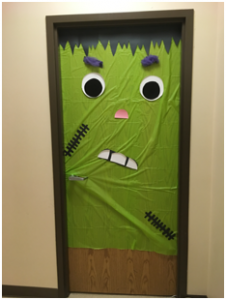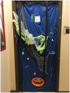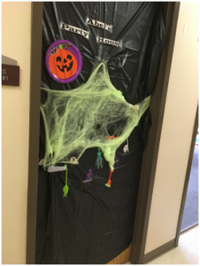 Just so you know, their doors just “opened” the fun yesterday. In addition to the door contest they played bingo, made “slime”, did crafts, cookie decorating, pin the spider on the web/pin the eye on the monster, and had a Halloween themed movie for kids who needed some down time. Finally, toward the end of the day, the kids went trick or treating around FSB. The staff really pulled together a great day for their clients.