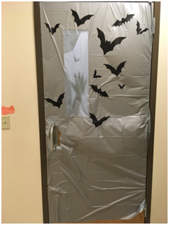 Just so you know, their doors just “opened” the fun yesterday. In addition to the door contest they played bingo, made “slime”, did crafts, cookie decorating, pin the spider on the web/pin the eye on the monster, and had a Halloween themed movie for kids who needed some down time. Finally, toward the end of the day, the kids went trick or treating around FSB. The staff really pulled together a great day for their clients.