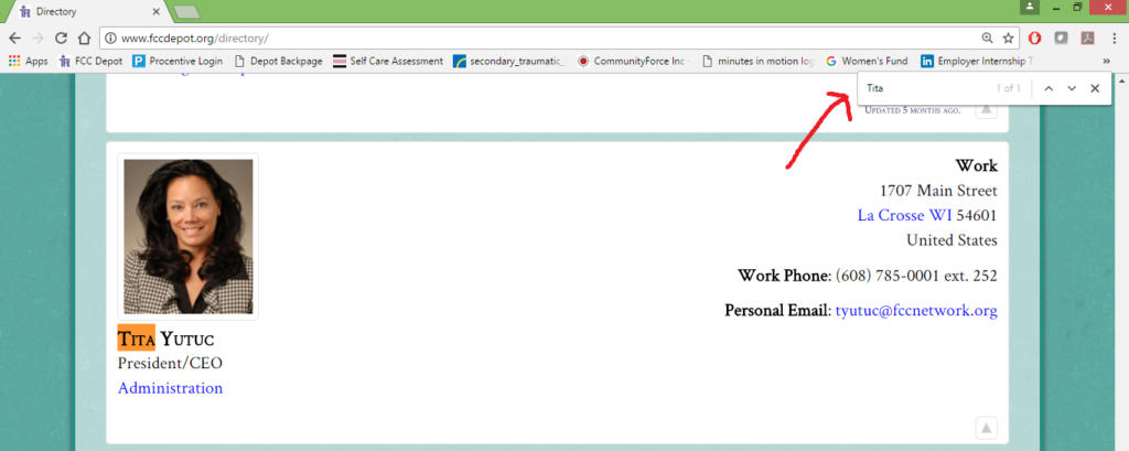Now you can search the Directory with ease. You can also use your new Ctrl+F skills to search any webpage, like to find a specific item on the Documents & Forms page. Go forth and search!