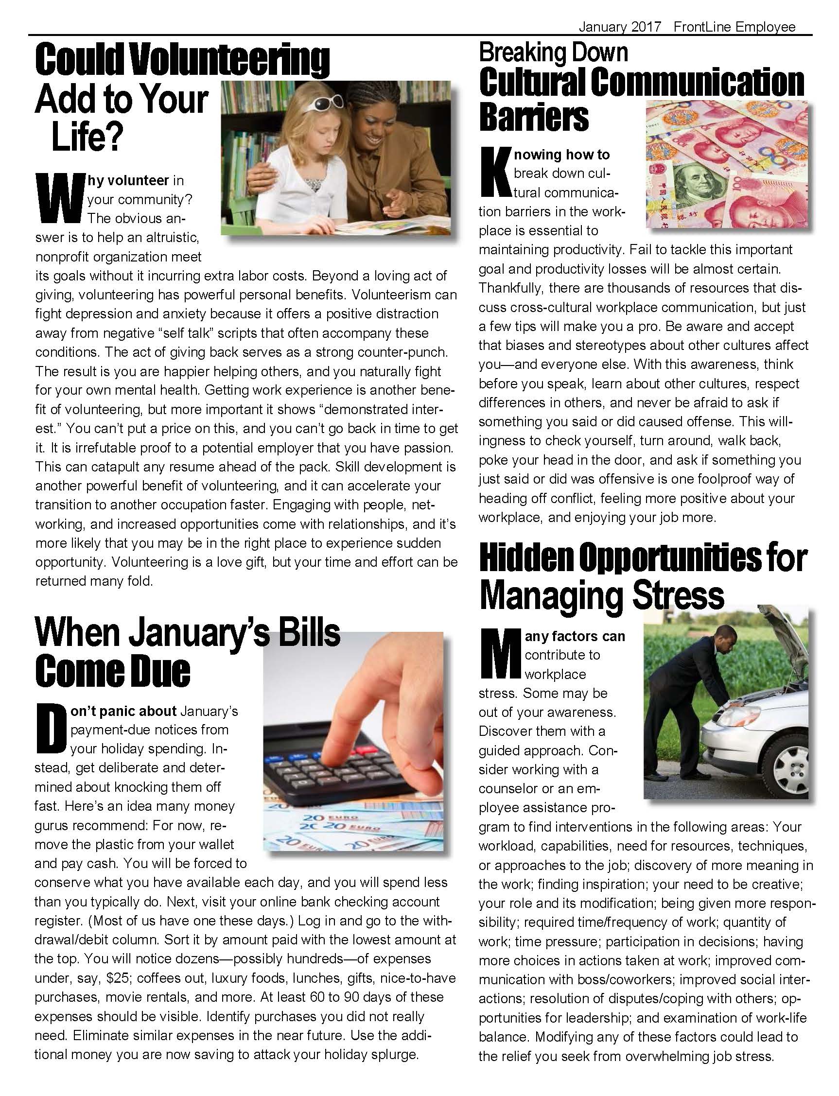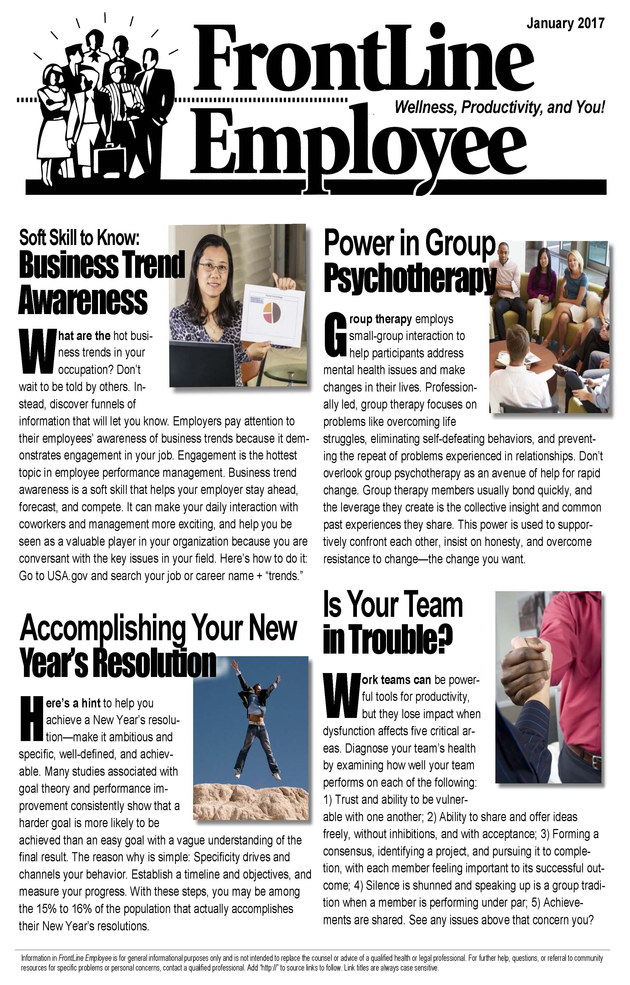 See below for the January issue of the Frontline Employee newsletter, offering information on wellness and productivity at work! Then, read January’s EAP topic: Facing the New Year with Hope.