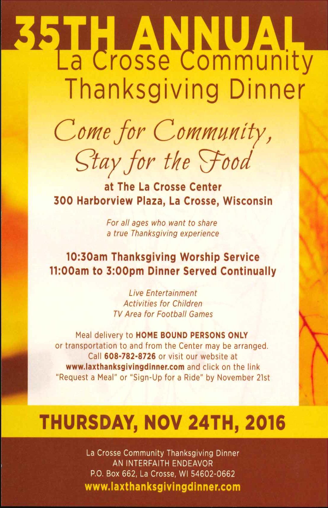 Please see flyer below for information on this year’s La Crosse Community Thanksgiving Dinner.