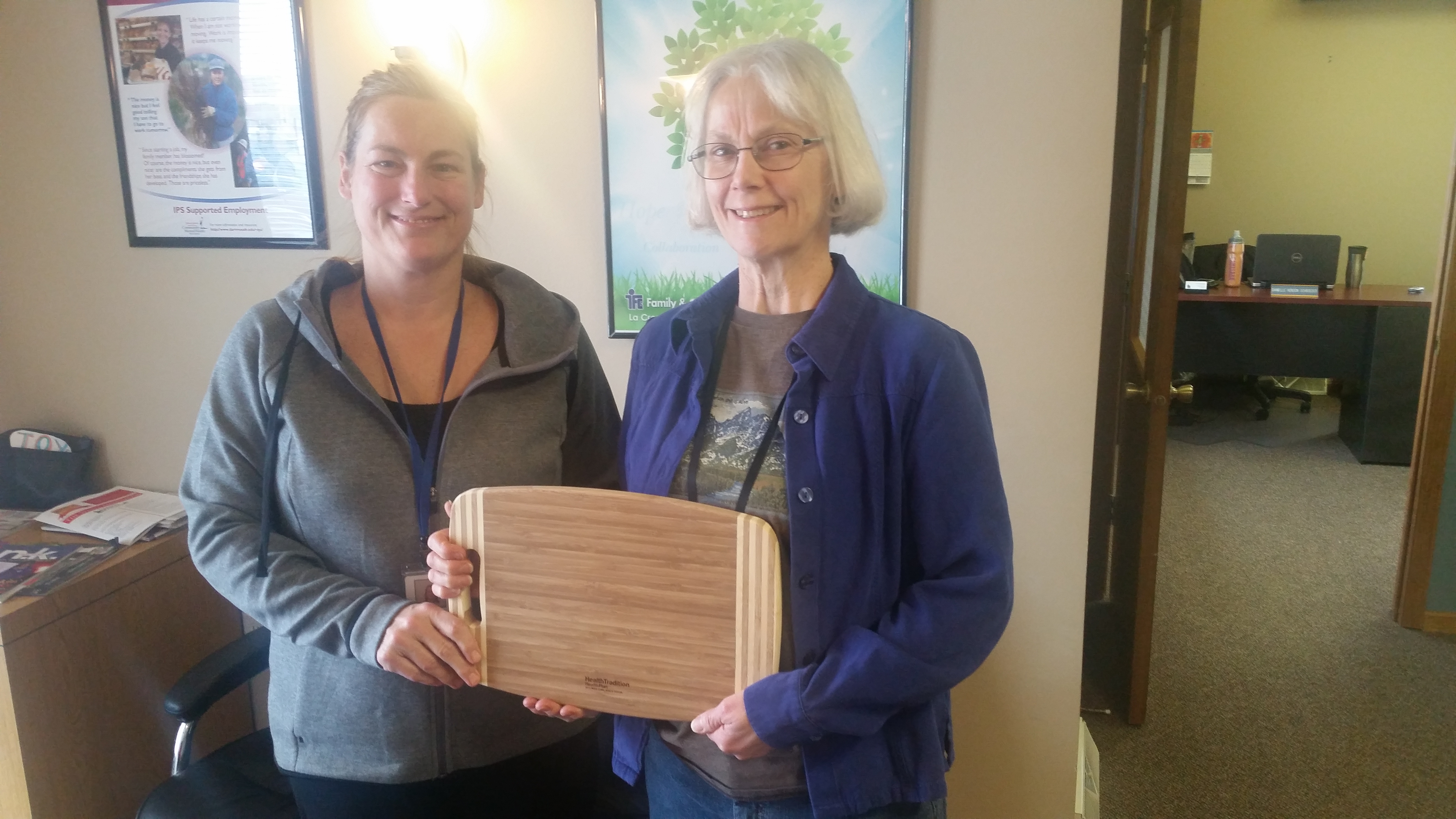 The Wellness Challenge that took place throughout the holidays has a winner! Cindy Berg, Client Services Specialist in CSP Sparta, was drawn as the winner of the Maintain Don’t Gain Challenge. Cindy won a bamboo cutting board!