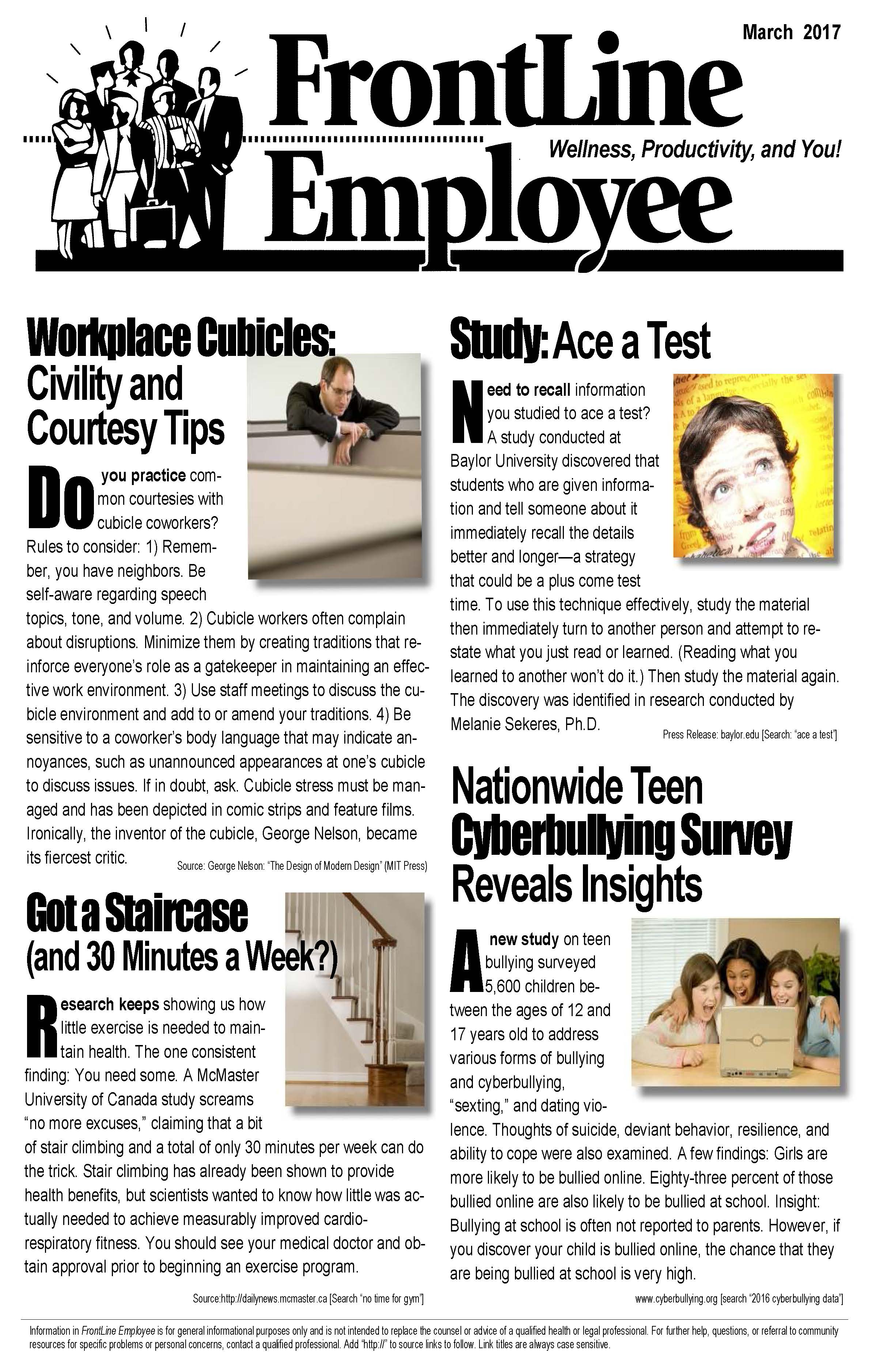 See below for the March issue of the Frontline Employee newsletter, offering information on wellness and productivity at work! Then, read March’s EAP topic: “Challenges for Single Parents”.