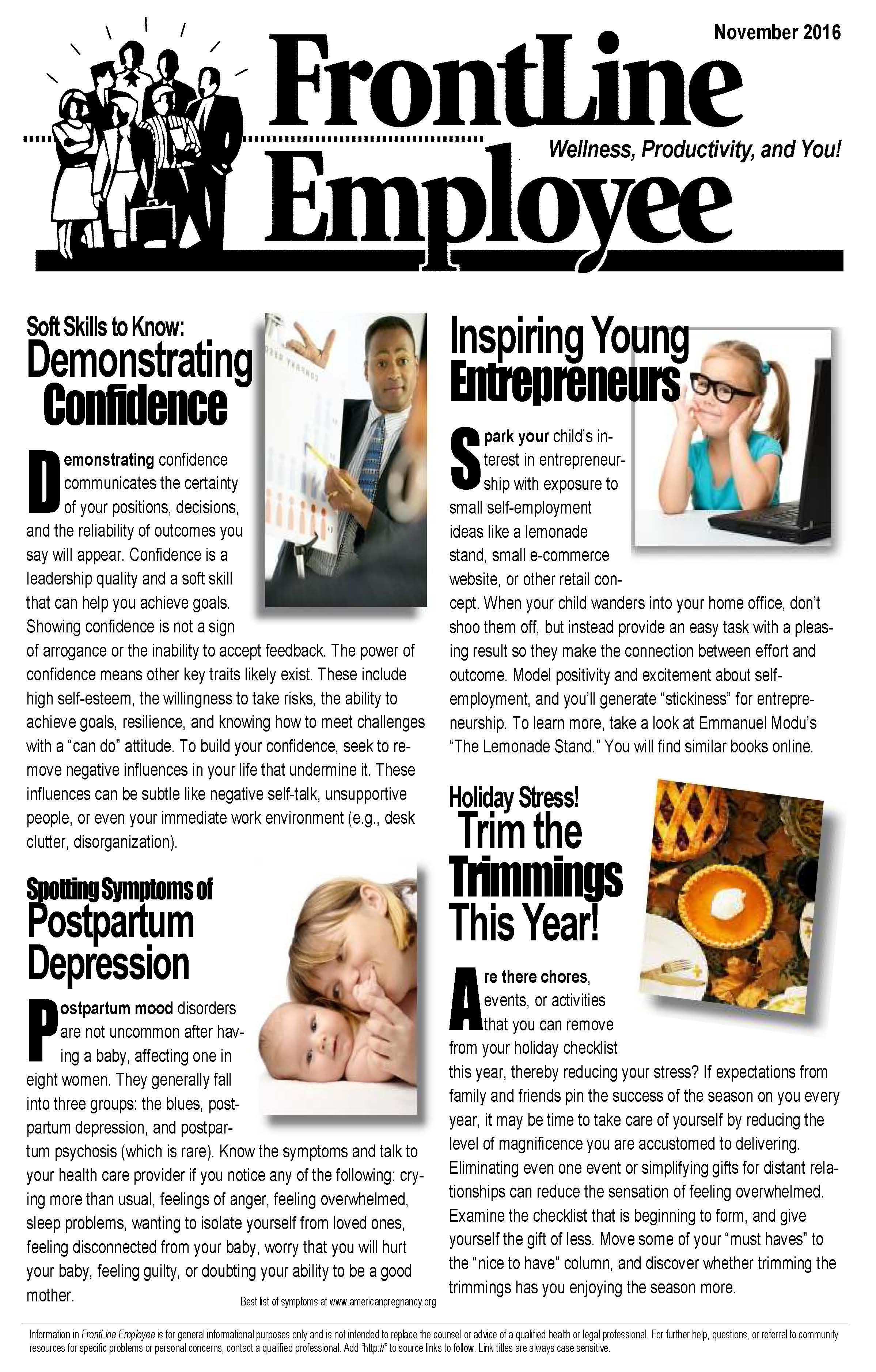 See below for the November issue of the Frontline Employee newsletter, offering information on wellness and productivity at work! Then, read November’s EAP topic: Coping With Change in the Workplace.