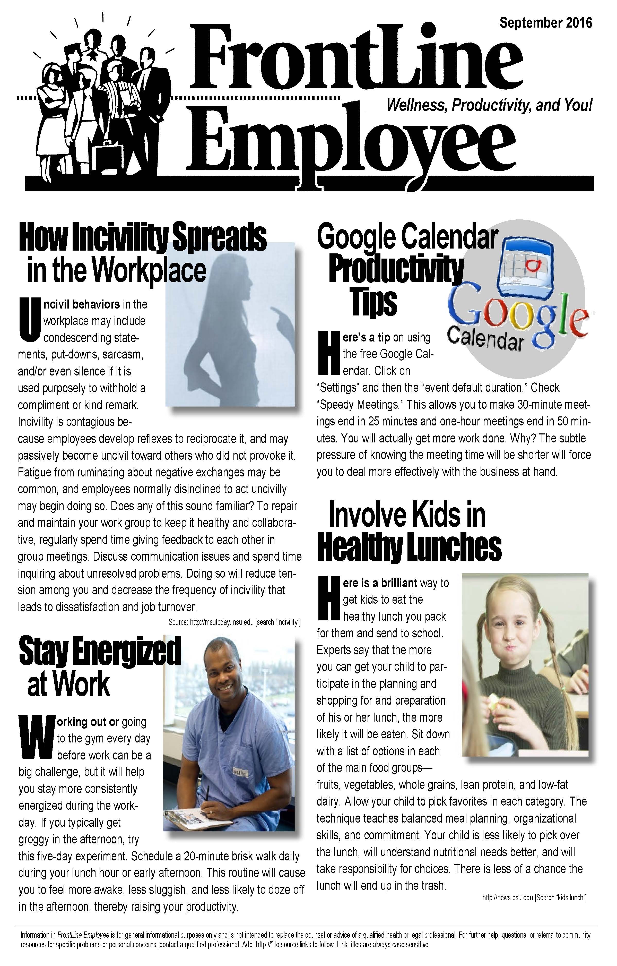 See below for the most current issue of the Frontline Employee newsletter, offering information on wellness and productivity at work!