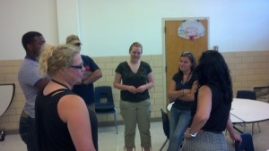 Rochester YNC staff make introductions to Tita (clockwise from bottom left) Leah Morken, James Robertson (JR), Tyler Rashid, Alexandra Jorrison (Alex), Analise Dressen and Tita Yutuc.