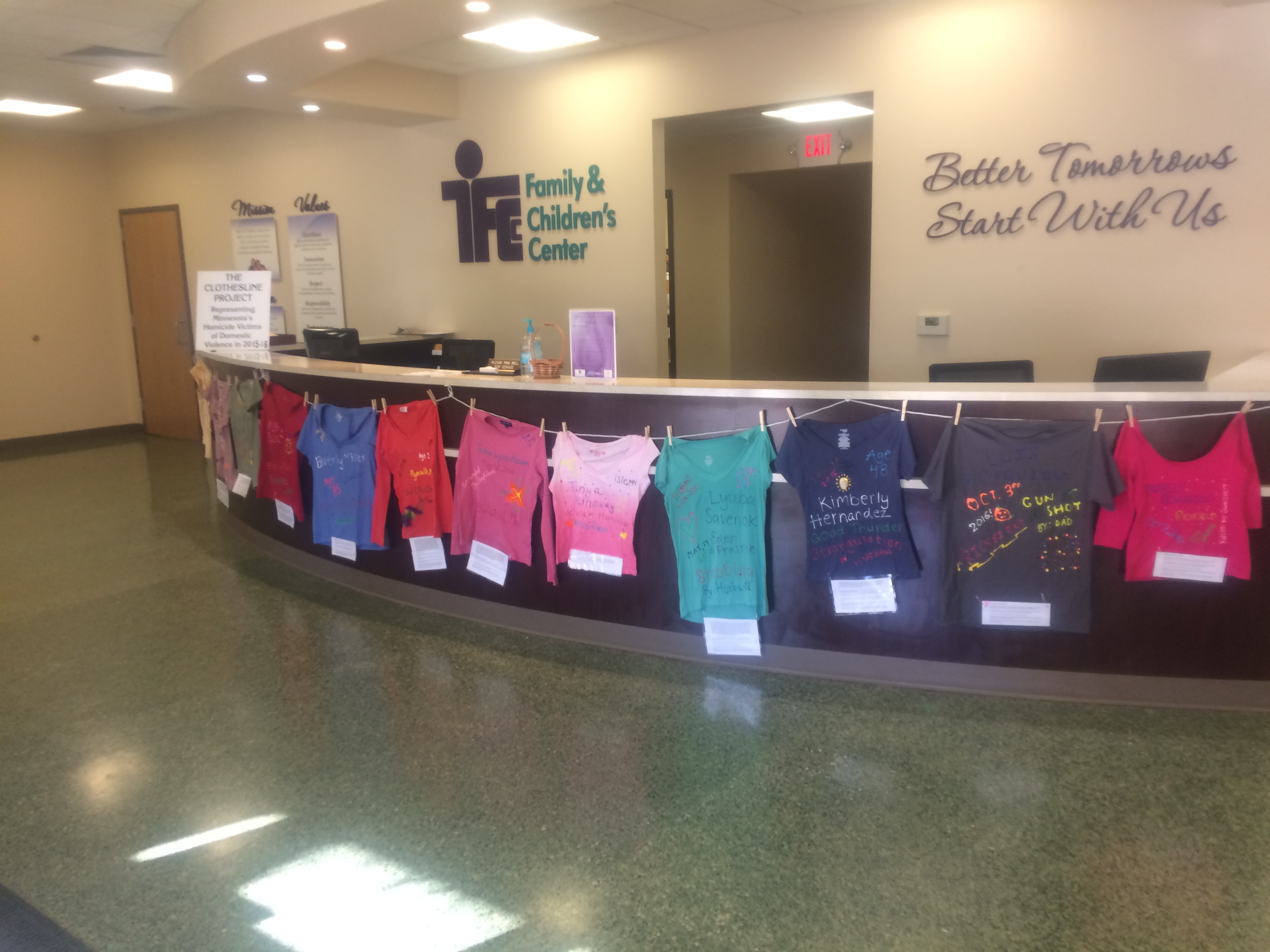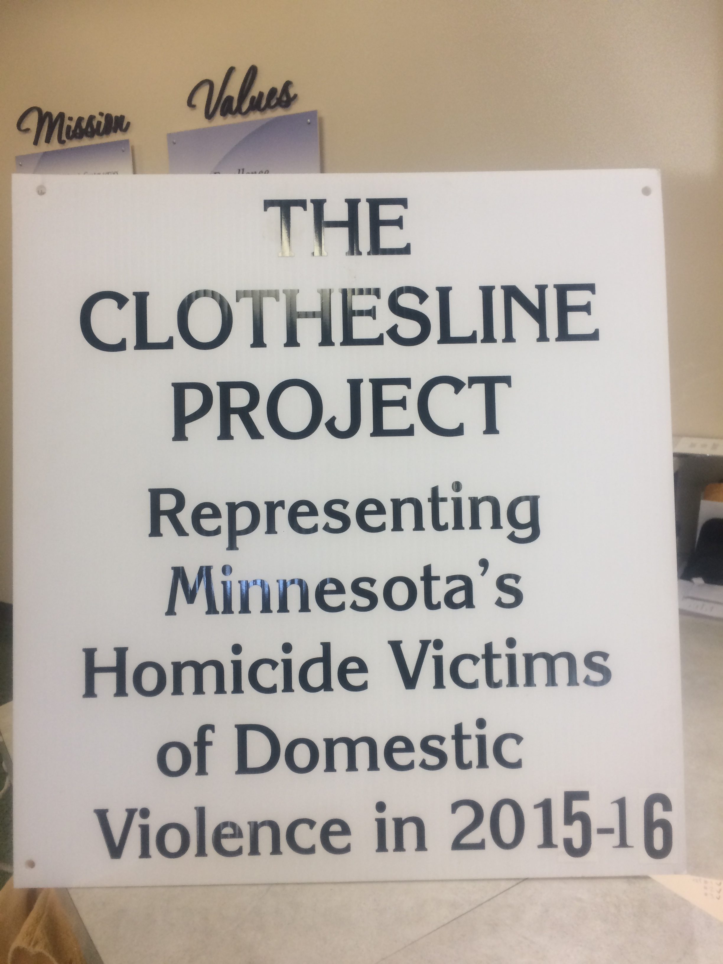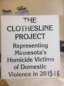 So far in 2016 there have been at least 12 documented murders in Minnesota due to domestic violence. In 2015 there were at least 34 murders in Minnesota due to domestic violence. All 2016 shirts are being displayed at FCC and a portion of the 2015 shirts are being displayed. The Clothesline Project will be on display at FCC’s Franklin Street Building throughout the rest of this week.