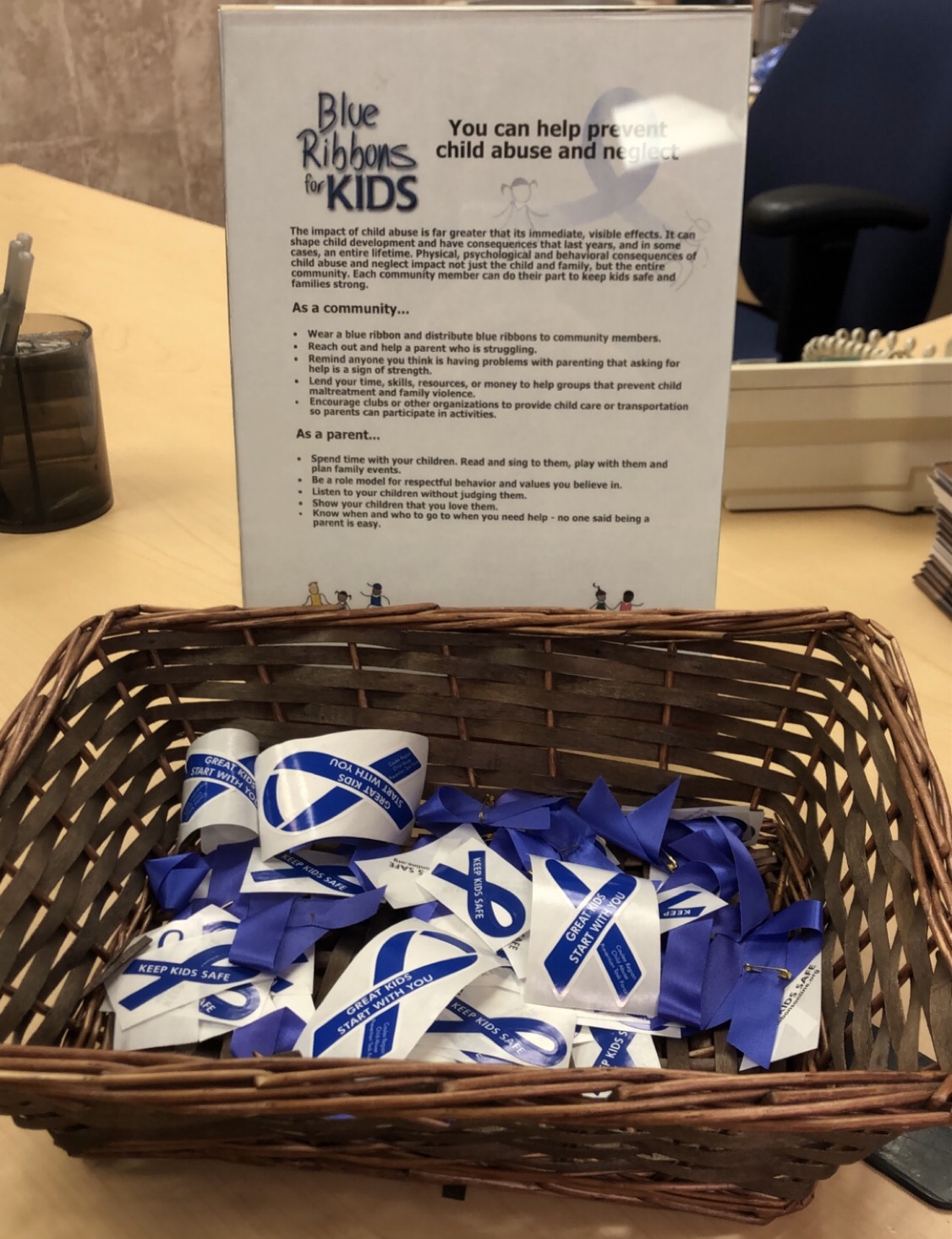 Wear your blue next week to show support and raise awareness for Child Abuse Prevention Month! Blue ribbons/pins will be available at your front desk.