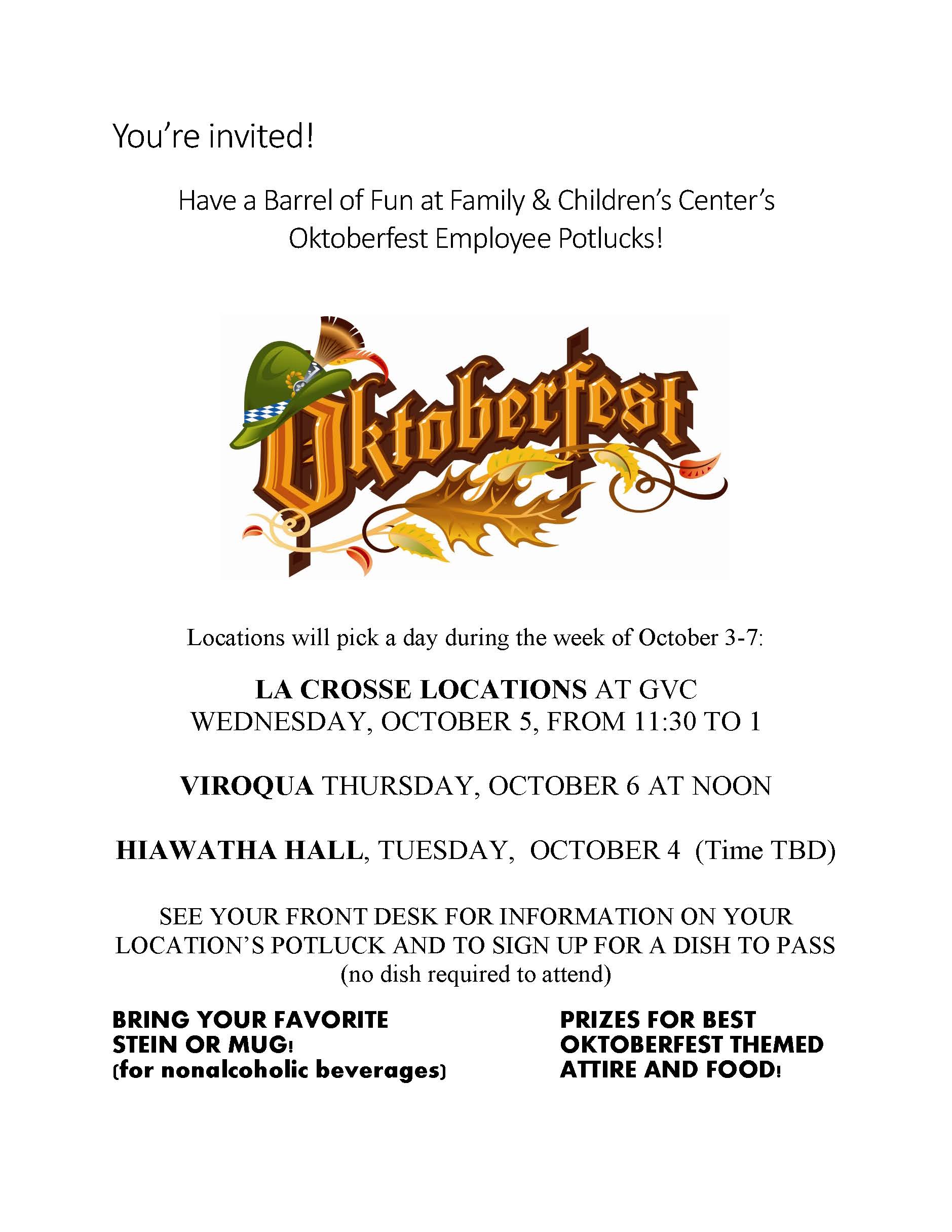 Please read on to find out more about the fun, food, and prizes at the Oktoberfest Employee Potlucks, happening next week at every location!
